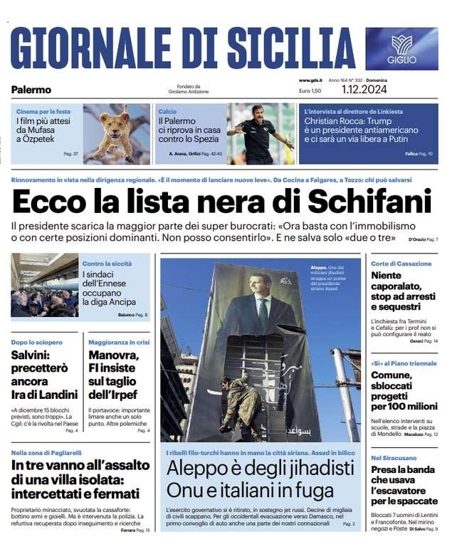 L’edizione odierna de Il Giornale di Sicilia dedica un titolo in prima pagina al Palermo in campo oggi al Barbera contro lo Spezia.