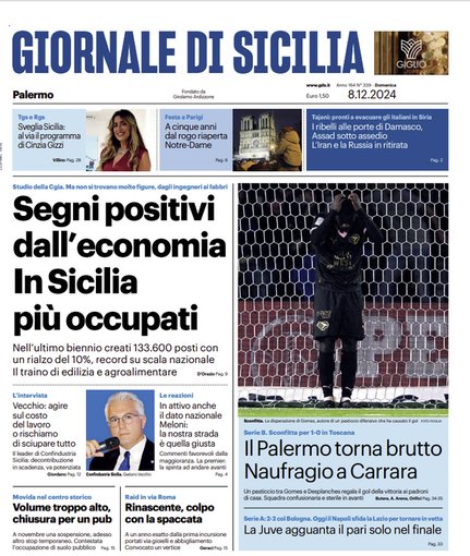 L’edizione odierna de Il Giornale di Sicilia dedica un titolo in prima pagina alla sconfitta del Palermo contro la Carrarese.