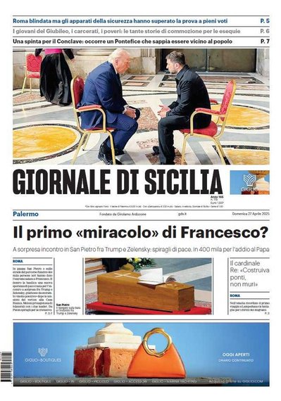 Prime pagine Prima pagina Giornale di Sicilia: “Il primo miracolo di Francesco?” Segui Ilovepalermocalcio su Google News Redazione Ilovepalermocalcio Aprile 27, 2025 Ieri i funerali del Santo Padre Continue Reading Previous Prima pagina Gazzetta dello Sport: “Tiro allo scudetto”Next Prima pagina Gazzetta dello Sport: “Conte Conta”