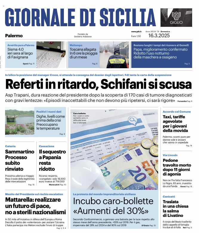 L’edizione odierna de Il Giornale di Sicilia dedica un titolo in prima pagina al caro bollette.