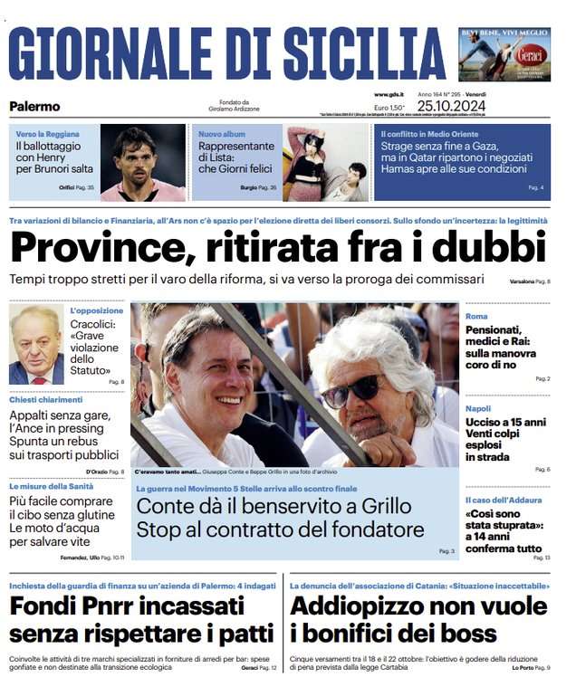 L’edizione odierna de Il Giornale di Sicilia dedica un titolo in prima pagina su Brunori e il ballottaggio con Henry.