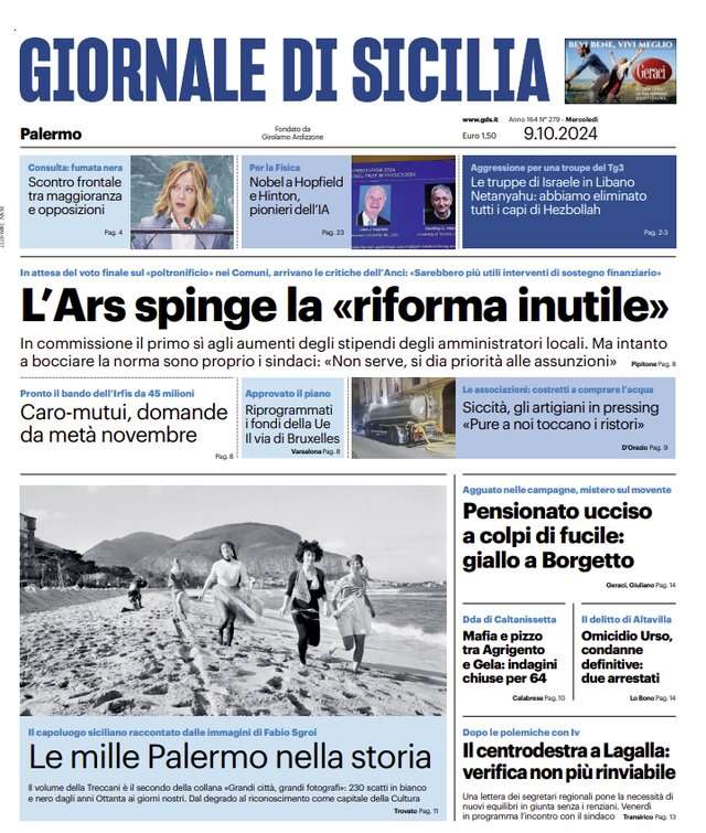 Prima pagina Giornale di Sicilia: “L’Ars spinge la «riforma inutile»”