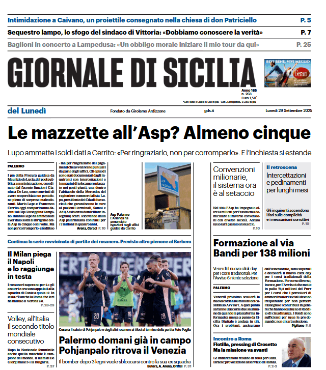 Prima pagina Giornale di Sicilia: “Le mazzette all’Asp? Almeno cinque”