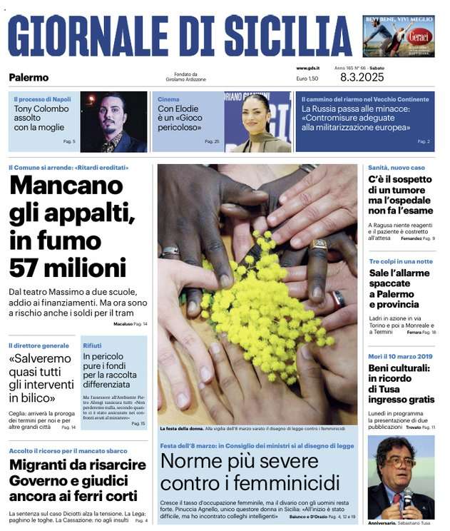 La prima pagina del Giornale di Sicilia si sofferma sulla mancanza di progetti per gli appalti a Palermo
