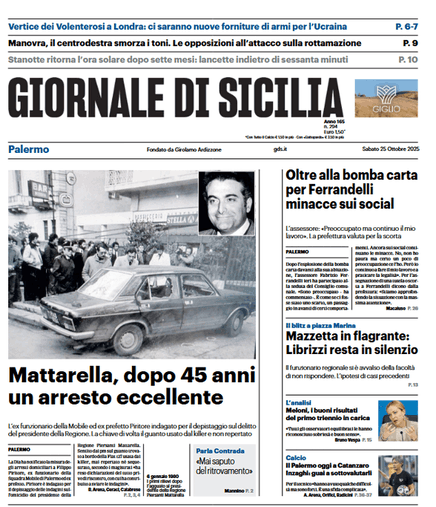 Prima pagina Giornale di Sicilia: “Mattarella, dopo 45 anni un arresto eccellente”