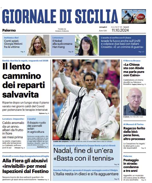 L’edizione odierna de Il Giornale di Sicilia dedica un titolo in prima pagina a Nadal che lascia il tennis.