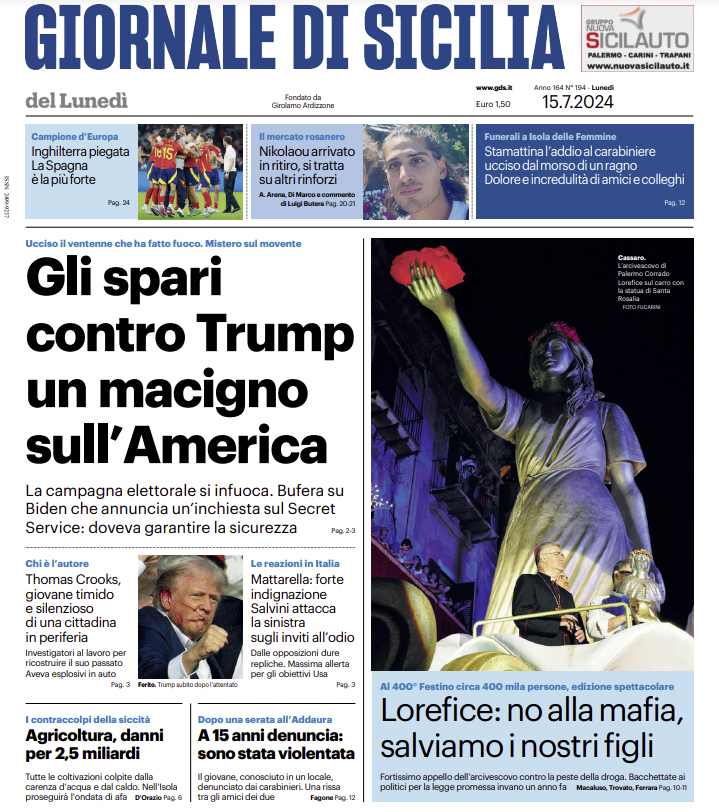 Prima pagina Giornale di Sicilia: “Nikolaou arrivato in ritiro, si tratta per altri rinforzi”