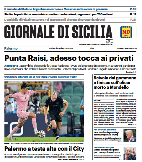 Prima pagina Giornale di Sicilia: “Palermo a testa alta con il City”