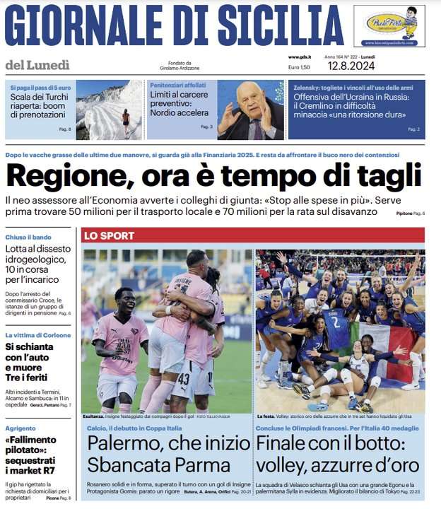 L’edizione odierna de “Il Giornale di Sicilia” dedica un titolo in prima pagina al Palermo che ha vinto contro il Parma.