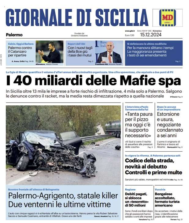 L’edizione odierna de Il Giornale di Sicilia dedica un titolo in prima pagina al Palermo.