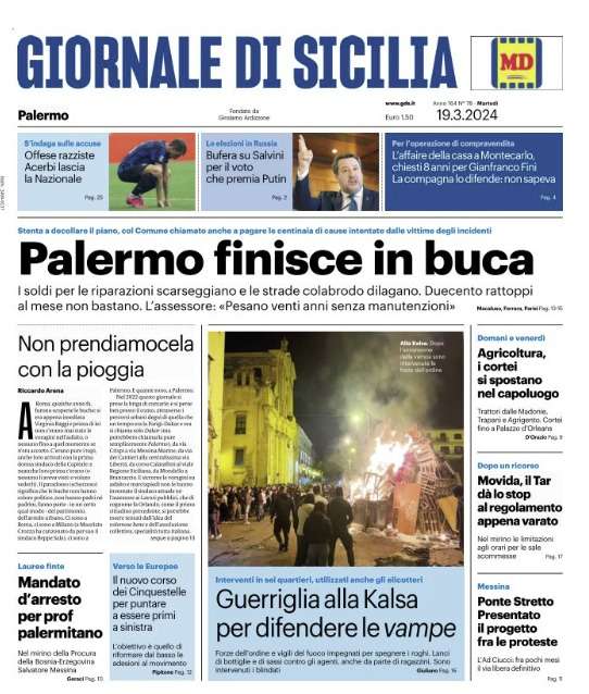 Prime pagine Prima pagina Giornale di Sicilia: “Palermo finisce in buca” Segui Ilovepalermocalcio su Google News Redazione Ilovepalermocalcio Marzo 19, 2024 L’edizione odierna de “Il Giornale di Sicilia” dedica la prima pagina alle buche a Palermo. Continue Reading Previous Prima pagina Tuttosport: “Max, fino a quando?”Next Prima pagina Corriere dello Sport: “Juve spiata”