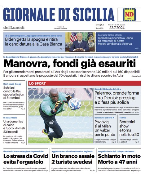 Prima pagina Giornale di Sicilia: “Palermo, prende forma l’era Dionisi. Pressing e difesa più solida”