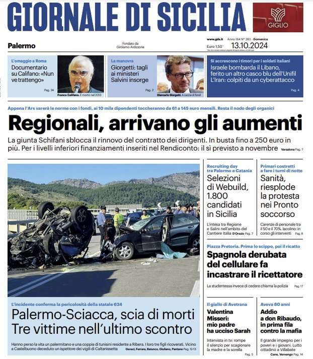 L’edizione odierna de Il Giornale di Sicilia dedica un titolo in prima pagina all’incidente sulla Palermo-Sciacca in cui sono morte tre persone.