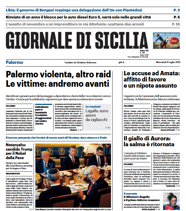 Prima pagina Giornale di Sicilia: “Palermo violenta, altro raid”