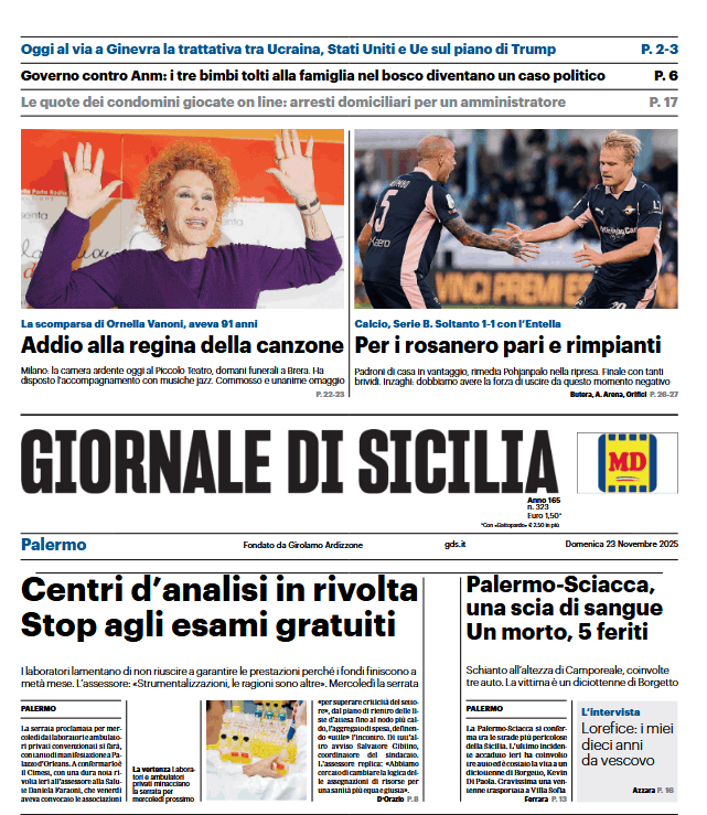 Prime pagine Prima pagina Giornale di Sicilia: “Per i rosanero pari e rimpianti” Segui Ilovepalermocalcio su Google News Redazione Ilovepalermocalcio Novembre 23, 2025 Calcio, Serie B. Soltanto 1-1 con l’Entella Continue Reading Previous Prima pagina Repubblica Palermo: “Rosa, a Chiavari un pari che non allontana la crisi”Next Prima pagina Tuttosport: “Fiesta”