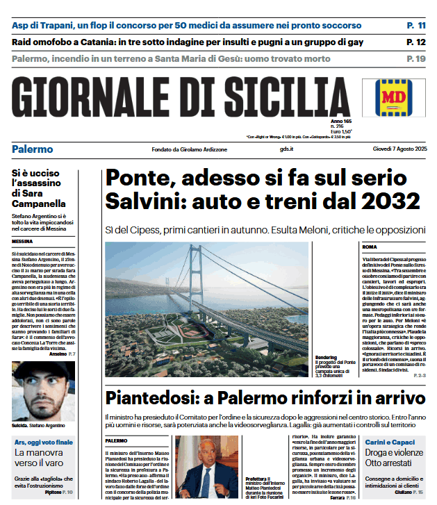 Prime pagine Prima pagina Giornale di Sicilia: “Piantedosi: a Palermo rinforzi in arrivo” Segui Ilovepalermocalcio su Google News Redazione Ilovepalermocalcio Agosto 7, 2025 Lagalla: già aumentati i controlli sul territorio Continue Reading Previous Prima pagina Corriere dello Sport: “Palermo, è fatta per Bardi”Next Prima pagina Tuttosport: “Festa a Palermo «Noi e i marziani»”