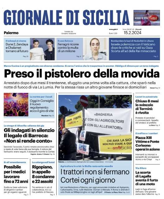 Prima pagina Giornale di Sicilia: “Preso il pistolero della movida”