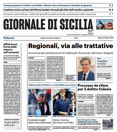 Prima pagina Giornale di Sicilia: “Regionali, via alle trattative”