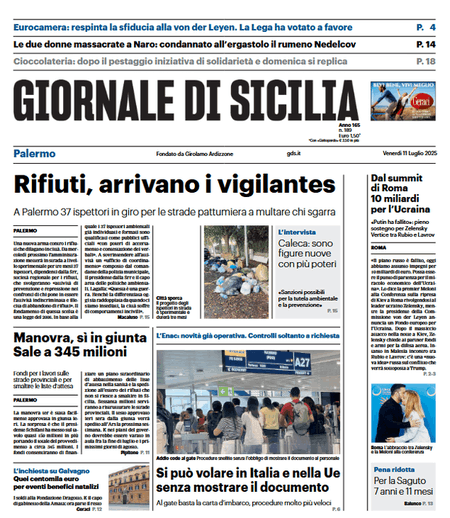 Prima pagina Giornale di Sicilia: “Rifiuti, arrivano i vigilantes”