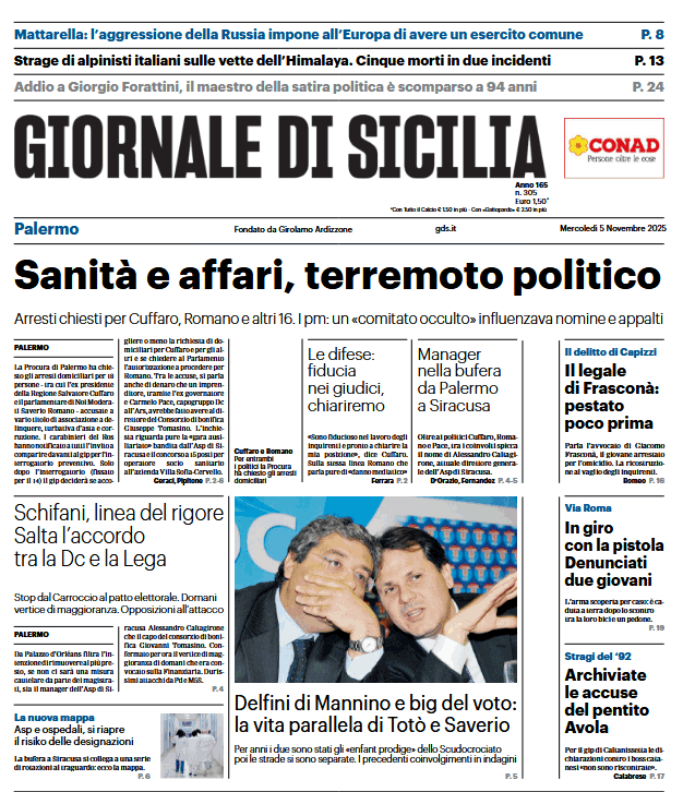 Prima pagina Giornale di Sicilia: “Sanità e affari, terremoto politico”
