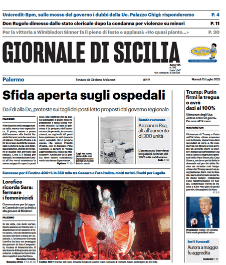 Prima pagina Giornale di Sicilia: “Sfida aperta sugli ospedali”
