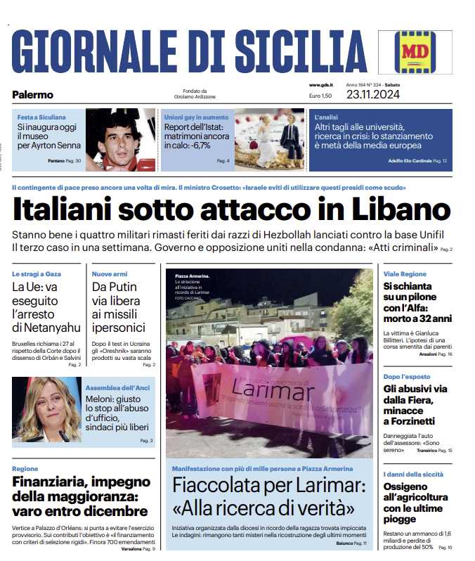 Prima pagina Giornale di Sicilia: “Si inaugura oggi il museo di Ayrton Senna””
