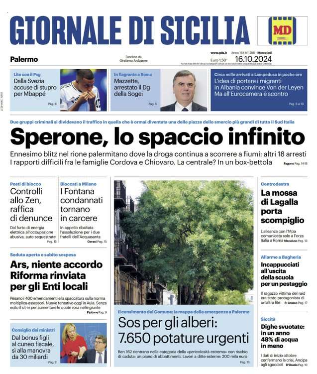 Prima pagina Giornale di Sicilia: “Sperone, lo spaccio infinito”