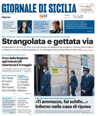 Nella sua prima pagina, l’edizione odierna del “Giornale di Sicilia” si sofferma sul triste destino di Angela Maria Corona, 47 anni, scomparsa da Bagheria da tre giorni. Il corpo è fatto a pezzi e messo in un sacco della spazzatura.