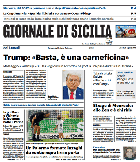 Prima pagina Giornale di Sicilia: “Un Palermo formato Inzaghi da venticinque tiri in porta”