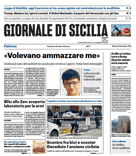 Prime pagine Prima pagina Giornale di Sicilia: “«Volevano ammazzare me»” Segui Ilovepalermocalcio su Google News Redazione Ilovepalermocalcio Novembre 4, 2025 Svolta sul caso del sedicenne ucciso per errore a Capizzi. Parla il vero bersaglio Continue Reading Previous Prima pagina Corriere dello Sport: “Palermo, Inzaghi mago dei cambi”Next Prima pagina Tuttosport: “«Basta rigorini contro il Toro!»”