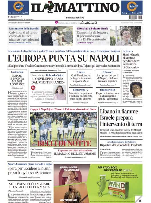 L’edizione odierna de Il Mattino dedica un titolo in prima pagina alla gara di stas tra Napoli e Palermo.