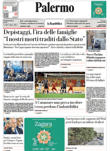 Prima pagina Repubblica Palermo: “A Catanzaro una prova incolore”