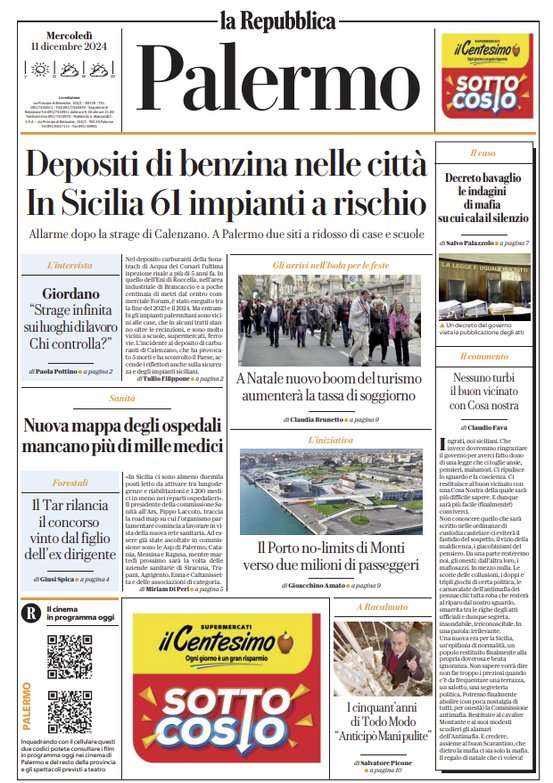 Prima pagina Repubblica Palermo: “A Natale nuovo boom di turismo”