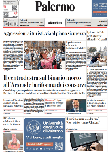 Prima pagina Repubblica Palermo: “Aggressioni ai turisti, via al piano sicurezza”