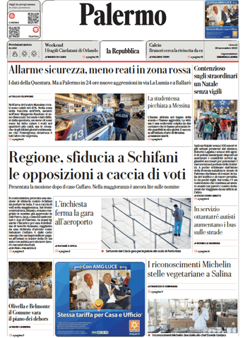Prima pagina Repubblica Palermo: “Allarme sicurezza, meno reati in zona rossa”