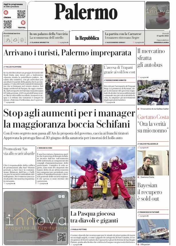 Prime pagine Prima pagina Repubblica Palermo: “Arrivano i turisti” Segui Ilovepalermocalcio su Google News Redazione Ilovepalermocalcio Aprile 17, 2025 Palermo li saprà accogliere? Continue Reading Previous Prima pagina Tuttosport: “Inter brividi e cuore”Next Prima pagina Giornale Di Sicilia: “Ars, governo impallinato sugli aumenti ai manager”