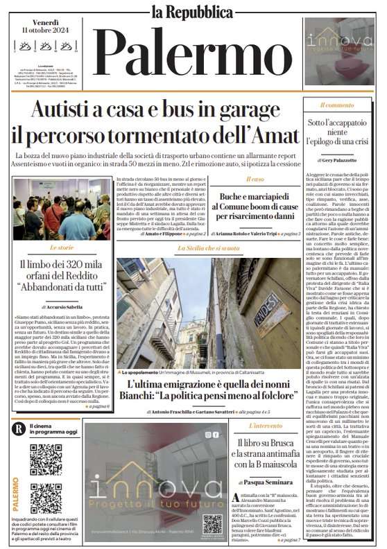 Prima pagina Repubblica Palermo: “Autisti a casa e bus in garage, il percorso tormentato dell’Amat”