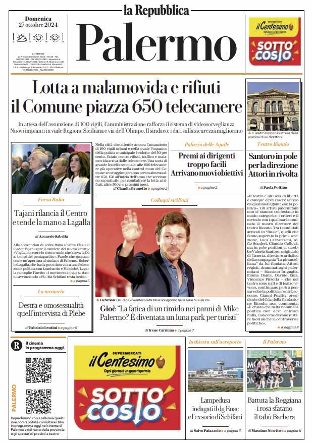 Prima pagina Repubblica Palermo: “Battuta la Reggiana, i rosanero sfatano il tabù Barbera”
