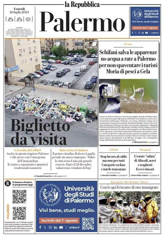 L’edizione odierna de la Repubblica Palermo, si sofferma sulla situazione dei rifiuti del capoluogo dell’Isola.
