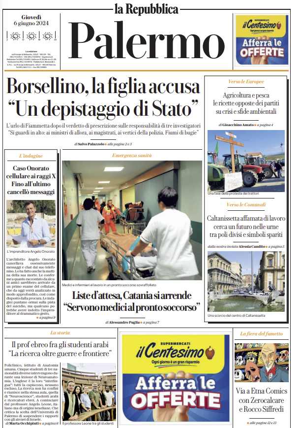 L’edizione odierna de “La Repubblica – Palermo” dedica la prima pagina alla strage di Via D’Amelio con le parole della figlia di Borsellino.
