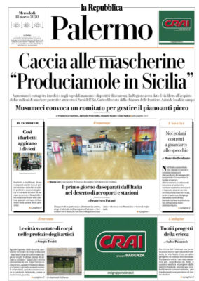 Prima pagina Repubblica (Palermo): “Caccia alle mascherine «Produciamole in Sicilia»”