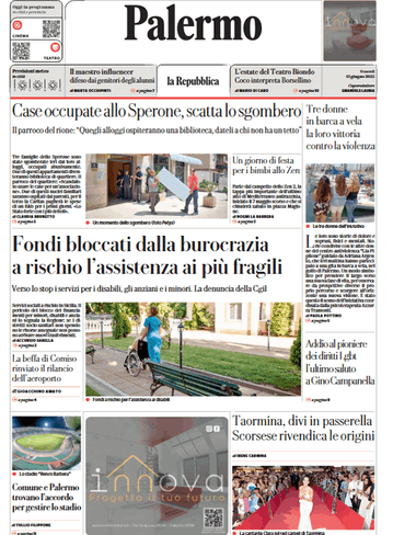 Prima pagina Repubblica Palermo: “Case occupate allo Sperone, scatta lo sgombero”