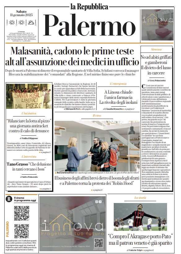 Prima pagina Repubblica Palermo: “«Compro l’Akragas e porto Pato». Ma il patron Veneto è già sparito”