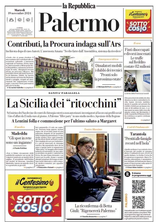 Prima pagina Repubblica Palermo: “Contributi la procura indaga sull’Ars”