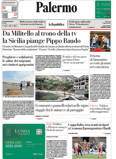 Prima pagina Repubblica Palermo: “Da Militello al trono della tv la Sicilia piange Pippo Baudo”