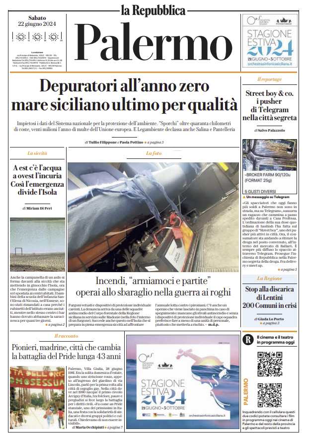 Prima pagina Repubblica Palermo: “Depuratori all’anno zero, mare siciliano ultimo per qualità”