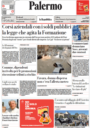 Prime pagine Prima pagina Repubblica Palermo: “Favara, donna dispersa. Non c’era l’allerta meteo” Segui Ilovepalermocalcio su Google News Redazione Ilovepalermocalcio Ottobre 2, 2025 I commercianti denunciano Noce, arrestati due estorsori Continue Reading Previous Prima pagina Giornale di Sicilia: “La ribellione al pizzo fa scattare due arresti”Next Prima pagina Gazzetta dello Sport: “Rincorsa Sinner”