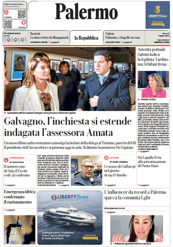 Prima pagina Repubblica Palermo: “Galvagno, l’inchiesta si estende”