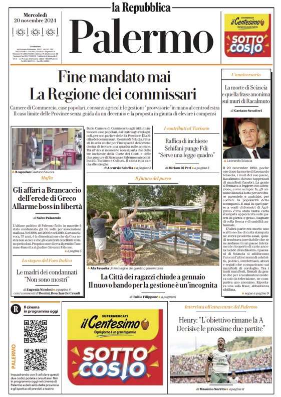 L’edizione odierna de La Repubblica Palermo dedica un titolo in prima pagina all’intervista ad Henry.
