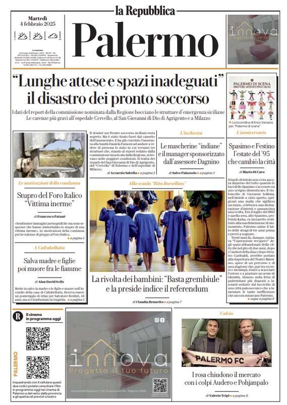 Prima pagina Repubblica Palermo: “I rosa chiudono il mercato con i colpì Audero e Pohjanpalo”